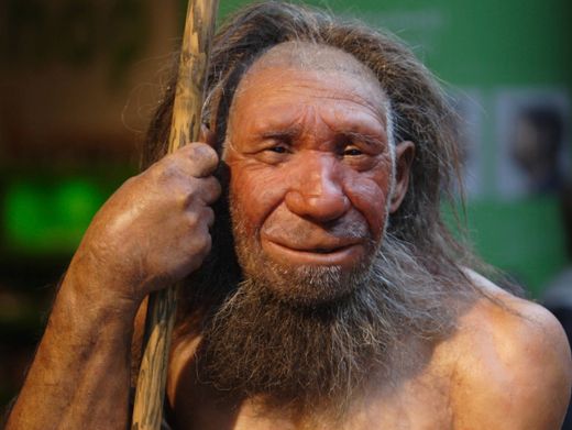 Rekonstruktion eines Neandertalers im Neandertal-Museum in Mettmann