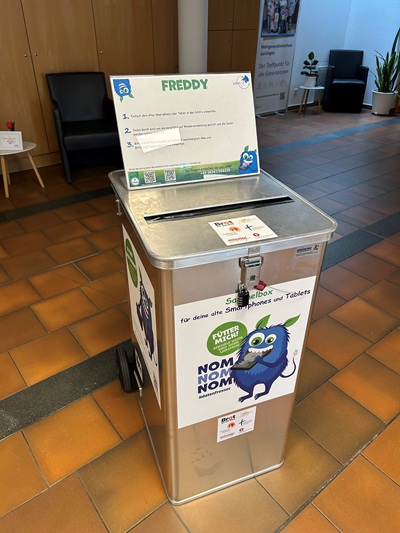 Foto (Stadtverwaltung Geislingen an der Steige / Christiane Wehnert): Sammelbox für Alt-Handys im MGH