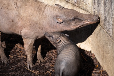 Bereits im November 2025 ist in der Wilhelma ein weibliches Ferkel bei den Hirschebern zur Welt gekommen. Besonders an warmen Frühlingstagen ist der Nachwuchs immer häufiger gemeinsam mit dem Muttertier auf der Außenanlage zu beobachten. Hirscheber gehören zur Familie der Echten Schweine (Suidae), bilden jedoch eine eigenständige Gattung. Das auffälligste Erkennungsmerkmal der männlichen Tiere sind ...