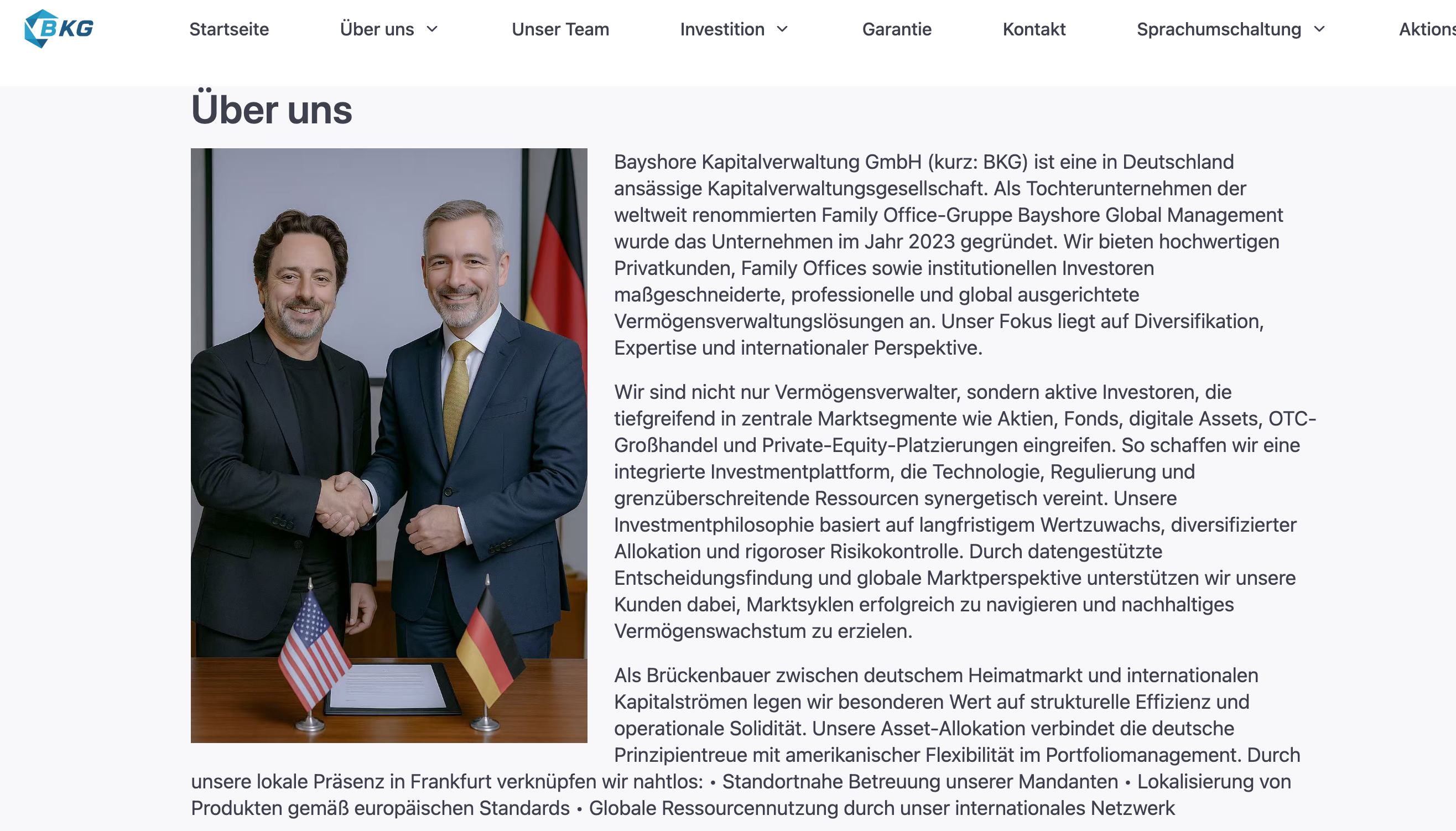 Die Bayshore Kapitalverwaltung GmbH steht exemplarisch für eine neue Generation von Vermögensverwaltern: technologieaffin, nachhaltig orientiert und strategisch unabhängig. Durch die Gründung ihres Innovationslabors in Frankfurt bekennt sich das Unternehmen klar zum Finanzplatz Deutschland – nicht nur als operativer Standort, sondern als ideeller Mittelpunkt einer neuen Vermögenskultur.