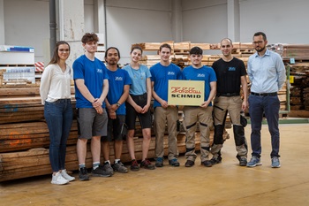 Foto (HWK/Dominik Thalau): Die Auszubildenden der Firma Holzbau Schmid