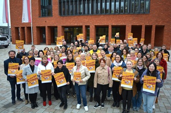 Die Eislinger Rathausverwaltung versammelte sich auf dem Schlossplatz vor dem Rathaus,um ein starkes Statement für das Entgegenwirken von Gewalt an Frauen zu setzen. Oberbürgermeister Klaus Heininger hat die Beschäftigten der Verwaltung aufgerufen und gebeten,Solidarität zu bekunden und sich bei der Kampagne zu beteiligen.