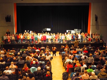 „Wir hatten nicht so viel Zeit zum üben“,hat Yvonne Kolberg,stellvertretende Leiterin der Musikschule Uhingen,den mehr als 350 Anwesenden – Mamas,Papas,Omas,Opas,Tanten,Onkel,Geschwister und Cousins – beim Adventskonzert gestanden. Doch davon war nichts zu hören. Mit Bravour präsentierten die Mädchen und Jungen im Alter zwischen 4 und 61 Jahren auf unterschiedlichen Instrumenten ihre erlernten Fähigkeiten.Die gesamte Bühnenbreite benötigten die Kleinsten: Die Kindergartenkinder der Musikalischen Früherziehung (MFE) trugen von Volker Rosin das Lied „Wisst ihr,was die Frösche machen“ vor,auf der Gitarre begleitet von Sevan Boyaciyan und Henrik Menzlin. Dabei imitierten sie unterschiedliche Tiere,quakten wie ein Frosch oder formten aus ihren Armen den Rüssel eines Elefanten. In der MFE steht die Begegnung mit den elementaren musikalischen Erlebnis- und Ausdrucksweisen im Mittelpunkt.Die gesamte Bühne füllten kurz vor der Pause die Musikschul-Allstars und -Newstars auf,die gemeinsam „Fröhliche Weihnacht“,„Was soll das bedeuten“ und „Jingle bells“ aufführten.Den gesamten Abend über traten die Musikschülerinnen und -schüler mit ihren unterschiedlichen Instrumenten auf: Lina Zepf und Elisea Lanza (Klarinette); Rea Heidle (Klavier); Rebecca Ayrer und Lev Makovetskij (Trompete,Tenorhorn); Luisa Wallmen (Klavier); Leonie Keppeler und Letty Belca (Querflöte); Sebion Kuray (Klavier); Sara Fritsche (Violone); Eric Shen,Pia Mara Karatas und Sara Karatas (Gitarre); Marius Zeller (Posaune); Samira Jester (Klavier); Zohra Schenk (Klavier); Max Zeller (Trompete); Kilian Güttler (Klavier); Lilly Franke (Querflöte); Pia Mara Karatas (Klavier); Aeoleon Fopoussi (Klavier); Lara Heidle (Violine); Alper Kabal (Klavier); Verena Keßler (Klavier); Filiz Baran (Sopranblockflöte),Lara Misikc (Altblockflöte) und Maja Kalosyan (Tenorblockflöte); Martin Schempp (Klavier) und Pia Mara Karatas sowie Sara Karatas (Gitarre).„Sie werden das eine oder andere Lied sicherlich erkennen“,sagte vorab Yvonne Kolberg. Und so war es denn auch. Abschließend dankten die mehr als 350 anwesenden Zuschauer den jungen Künstlerinnen und Künstlern der städtischen Musikschule für deren Darbietungen mit tosendem Applaus. Yvonne Kolberg: „Das Adventskonzert dient auch dazu,dass unsere Schülerinnen und Schüler den Lohn fürs Lernen der Instrumente und ihre damit verbundene Geduld erhalten: den Applaus.“Info: Wer ein Instrument erlernen oder mehr über das Angebot der städtischen Musikschule erfahren will,erhält weitere Infos auf https://www.uhingen.de/musikschule im Internet.PM (Stadtverwaltung Uhingen): Vor vollbesetzten Reihen treten die Schülerinnen und Schüler,hier die Musikschul-Newstars,der Musikschule Uhingen im Uditorium auf.PM Stadtverwaltung Uhingen