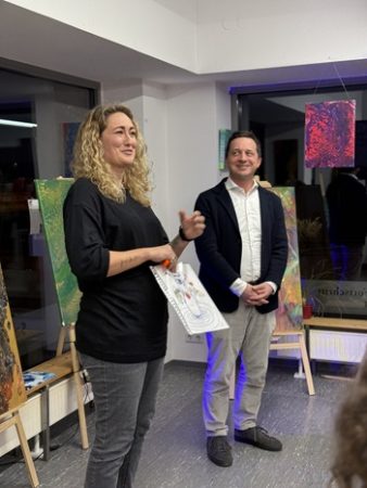 Gestrahlt hat am Donnerstagabend auch die jüngste Besucherin der Finissage: Die 9-jährige Soraia,die schon einige Kunstkurse der Buntmalerei besucht hat,durfte nach der offiziellen Begrüßung das Licht ausknipsen.