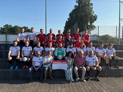 Im Anschluss an die Scheckübergabe bot der FC Eichenkreuz auf dem Platz eine überzeugende Leistung und gewann das Spiel gegen den FC Amtsschimmel mit 3:0. Bei bestem Fußballwetter zeigten die Spieler des CVJM ihre Spielfreude und Teamstärke,während die anwesenden Zuschauer die Begegnung in familiärer Atmosphäre verfolgten. „Es ist uns ein Anliegen,unser Jubiläumsjahr mit einem sozialen Beitrag für Menschen in schwierigen Lebenssituationen zu verbinden“,betonte Präsident Ulrich Steinbach bei der Übergabe. Mit der Spende an das Hospiz setzt der CVJM Göppingen Abteilung Eichenkreuz ein sichtbares Zeichen für gelebte Nächstenliebe – passend zu 50 Jahren gelebtes Miteinander im Landkreis Göppingen.