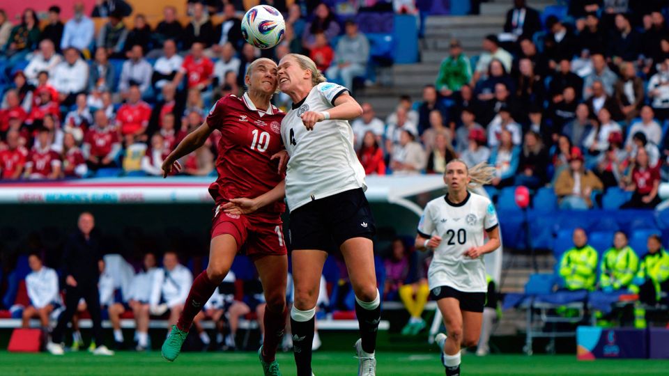 Kopfballduell der Dänin Pernille Harder und der Deutschen Rebecca Knaak bei der EM: »Frauen ziehen sich durch Kopfbälle häufiger eine Gehirnerschütterung zu als Männer«