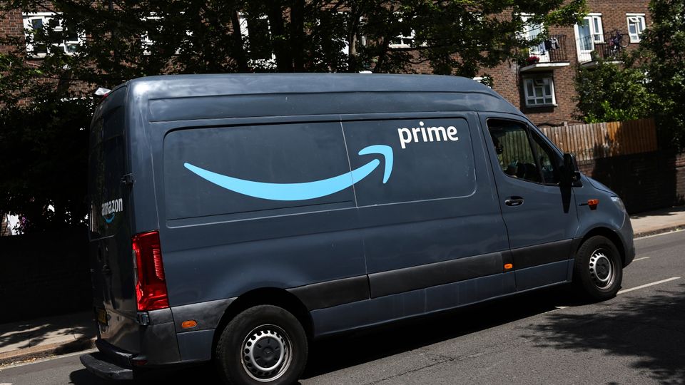 Lieferfahrzeug von Amazon mit Prime-Werbung