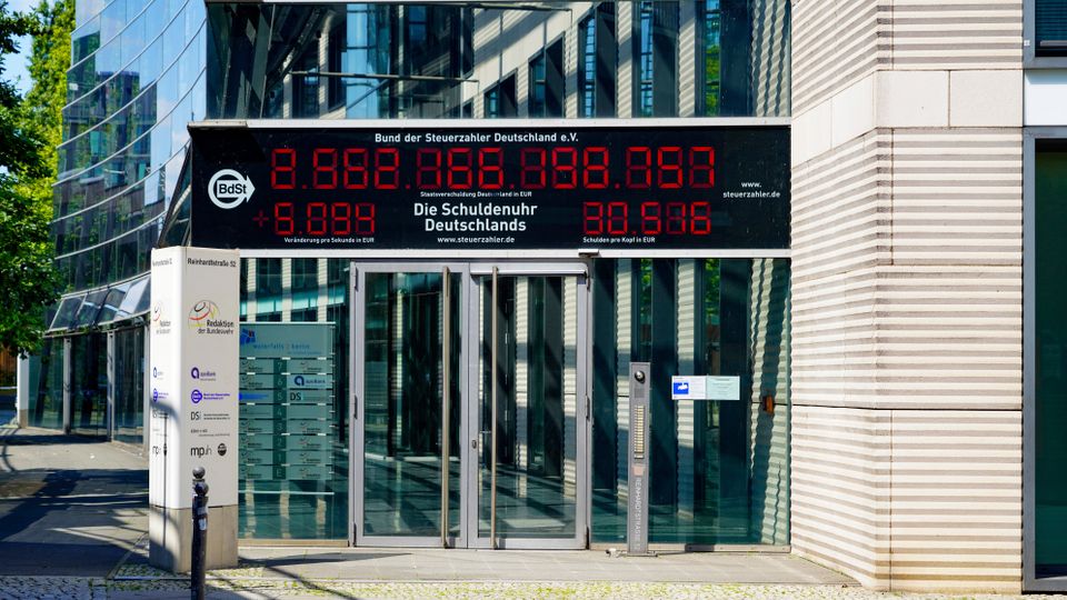 Die Schuldenuhr Deutschlands vom Bund der deutschen Steuerzahler Deutschland e.V. in Berlin