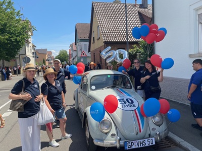Foto (Bildquelle: Stadt Eislingen): 50 Jahre vhs Eislingen – nicht nur vielfältige Veranstaltungshighlights im Jubiläumsjahr zeichnen die vhs aus,sondern auch die erstmalige Teilnahme am Stadtfestumzug vor wenigen Wochen.