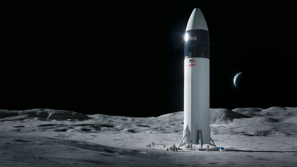 SpaceX-Landefähre auf dem Mond (grafische Darstellung): Oberfläche von einer bis zu mehrere Meter dicken Staubschicht bedeckt