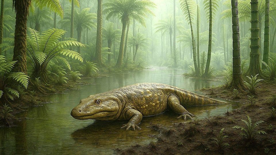 Grafische Rekonstruktion eines Cyclotosaurus: Sie sahen aus wie Krokodile,gehören aber zu den Riesenlurchen