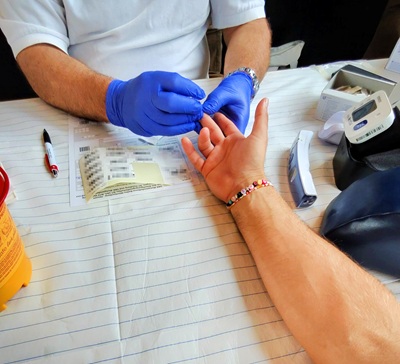 Foto (Stadt Uhingen): Vor der Blutspende wird der Sauerstoffgehalt im Blut geprüft.