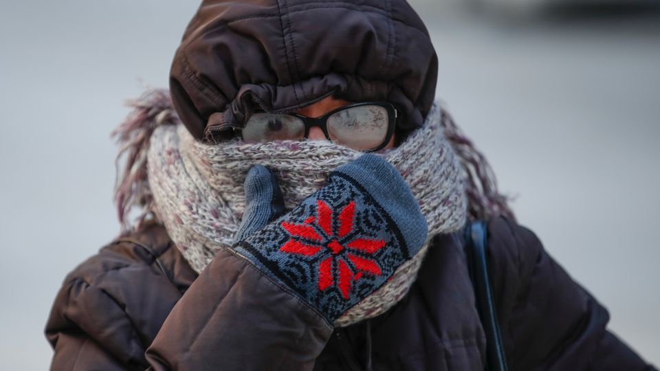 Eine Frau schützt sich vor kaltem Wetter